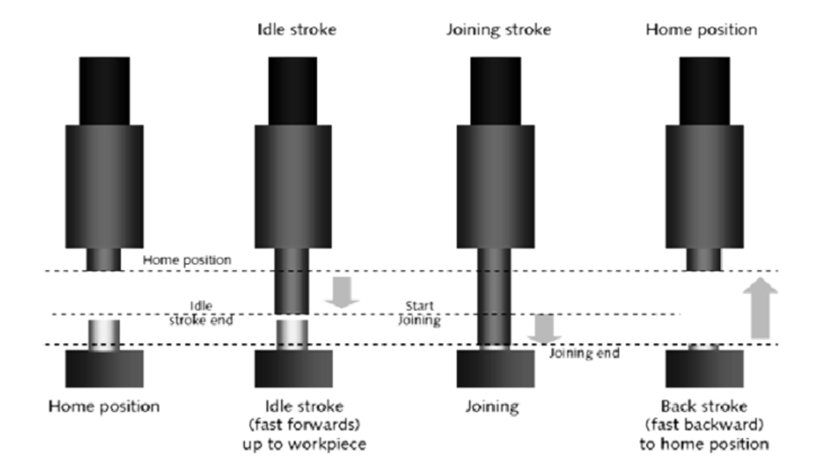 說明:伺服壓機動作一般分為 3 個過程,分別是: